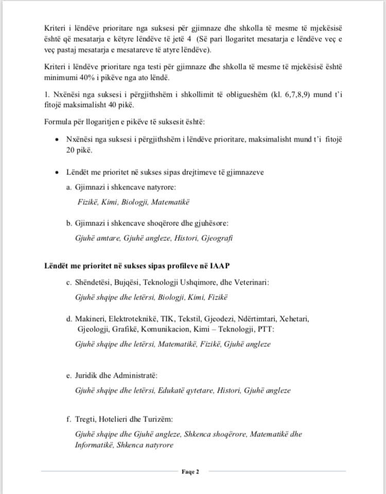 Rezultatet e pranimit të nxënësve do të dalin me datë 26.08.2021, teksa kthimi i dokumenteve për nxënësit e papranuar bëhet me datë 27.08.2021.