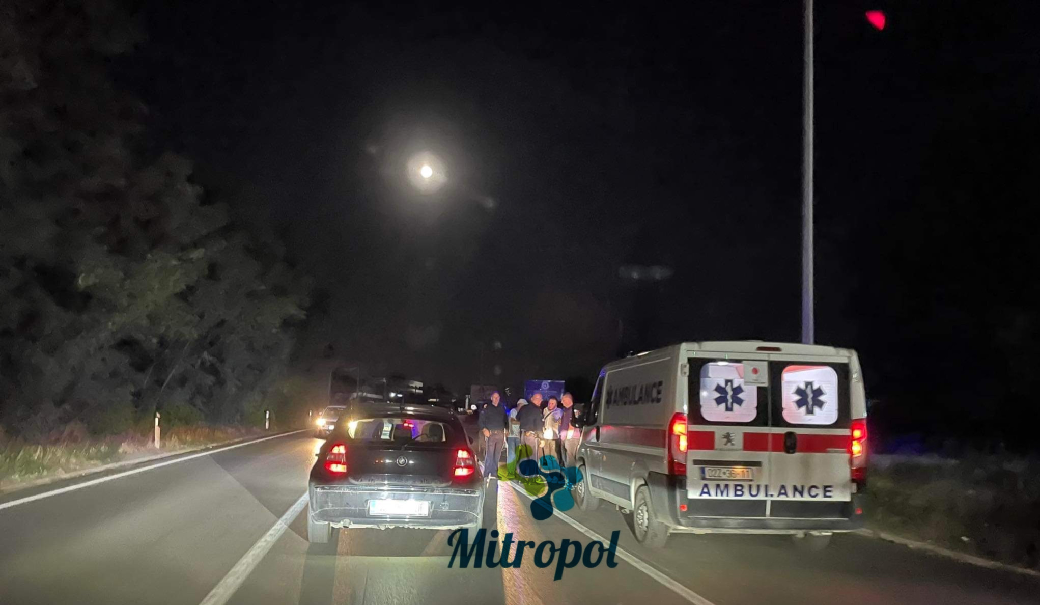 Në vendin e ngjarjes ndodhen një veturë dhe njësite nga Policia e Kosovës e ato emergjente bashkë me një grumbull njerëzish, siç mund të shihet edhe në fotografi.