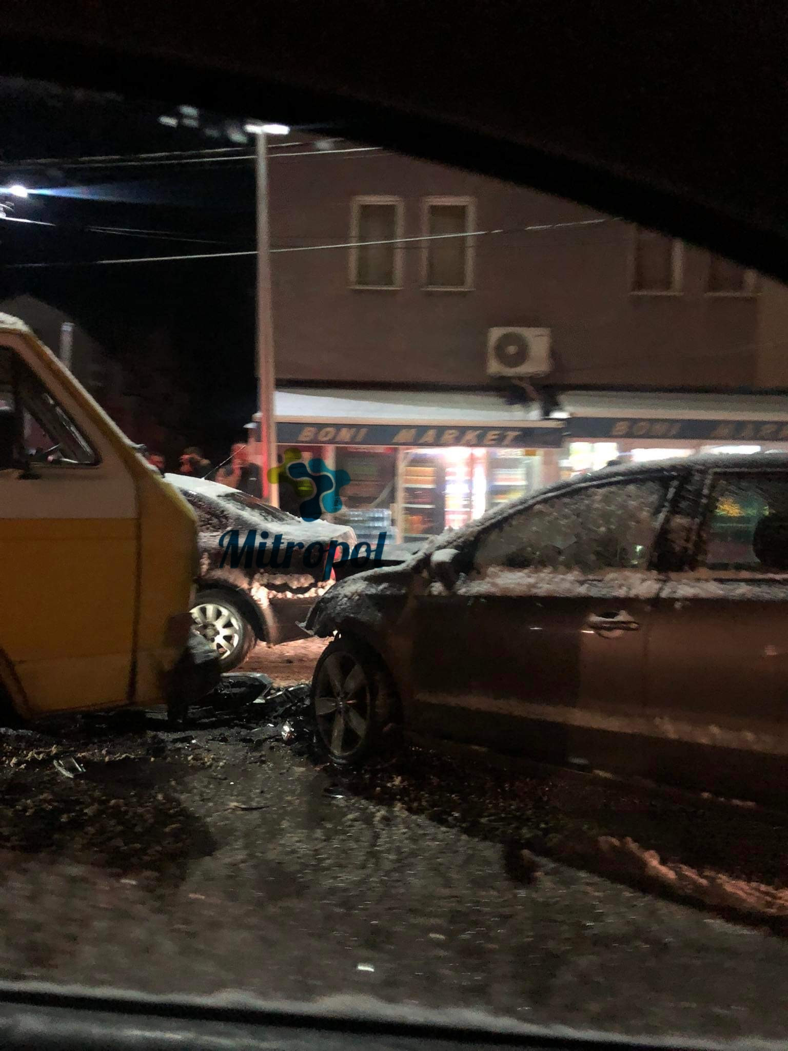 Vetura dhe kombi janë përplasur me njëra tjetrën pas rreshjeve të borës.